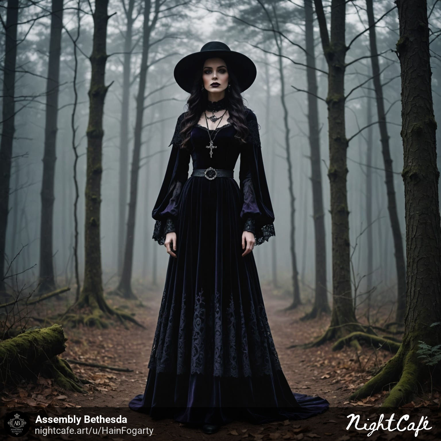 The modest goth style is a cool blend that combines dark, edgy vibes with thoughtful coverage. It’s all about embracing that mysterious, alternative style and keeping things modest, comfortable, and true to you at the same time. A mix of black lace, velvet textures, and dramatic silhouettes, but with longer skirts, higher necklines, and layers.